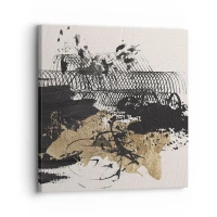 Tablou pe pânză Canvas - pictură abstractă în negru și auriu, cu linii și structuri dinamice. - 70x50cm - Compoziție cu pasiune - Decorațiune modernă pentru perete pentru living și dormitor ARTTOR