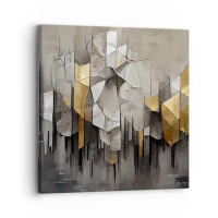 Tablou pe pânză Canvas - Abstracție geometrică în nuanțe de auriu și gri - 70x50cm - Compoziție de gheață și lumină - Decorațiune modernă pentru perete pentru living și dormitor ARTTOR