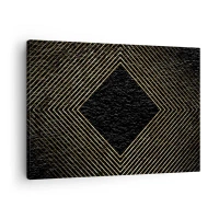 Tablou pe pânză Canvas - Fundal negru cu un model geometric de linii aurii - 70x50cm - Geometrie în stil glamour - Decorațiune modernă pentru perete pentru living și dormitor ARTTOR