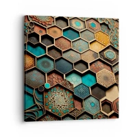 Tablou pe pânză Canvas - Ornamente colorate în modele hexagonale - 70x50cm - Ornamente arabe - o variație - Decorațiune modernă pentru perete pentru living și dormitor ARTTOR