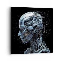 Tablou pe pânză Canvas - Portret futurist al unui cyborg în stil industrial pe fundal negru. - 70x50cm - Tehnologia este o femeie - Decorațiune modernă pentru perete pentru living și dormitor ARTTOR