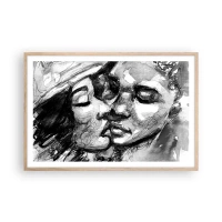 Poster în ramă de stejar deschis - Un moment de tandrețe - 100x70 cm