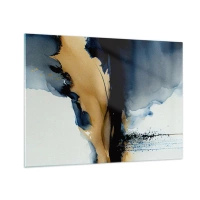 Tablou pe sticlă - O compoziție abstractă în nuanțe de albastru marin și bej - 70x50cm - În spatele cortinei - Decorațiune modernă pentru perete pentru living și dormitor ARTTOR