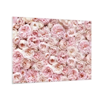 Tablou pe sticlă - Trandafiri pastelați într-un aranjament floral dens - 70x50cm - Presărat cu trandafiri - Decorațiune modernă pentru perete pentru living și dormitor ARTTOR