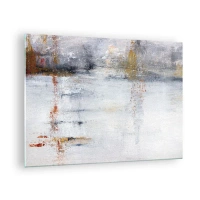 Tablou pe sticlă - O pictură abstractă care prezintă o combinație subtilă de gri, alb și auriu. - 70x50cm - În spatele cortinei de aer - Decorațiune modernă pentru perete pentru living și dormitor ARTTOR