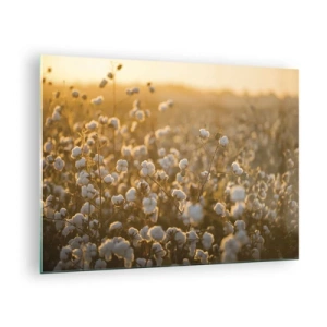 Tablou pe sticlă - Câmp de bumbac la apus - 70x50cm - Câmp pufos - Decorațiune modernă pentru perete pentru living și dormitor ARTTOR