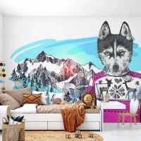 Tapet Premium Canvas - Lupul în lâna de oaie - Abstracția, Lup, Pentru copii - 250x175 cm
